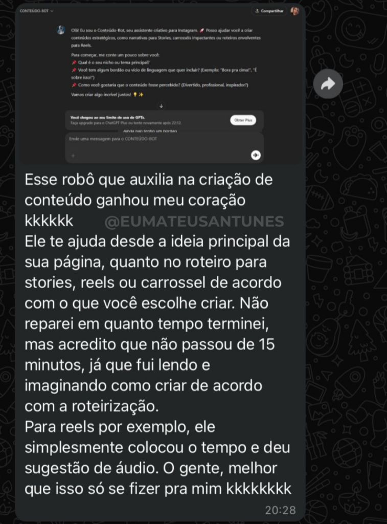 Eu confesso que fiquei espantado com a facilidade que é criar posts, reels, stories e narrativas prontas todos os dias, sem precisar quebrar a cabeça com ideias